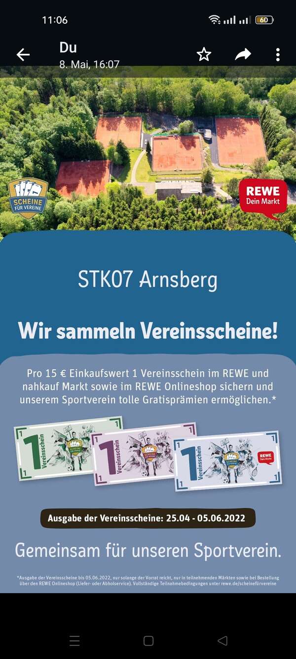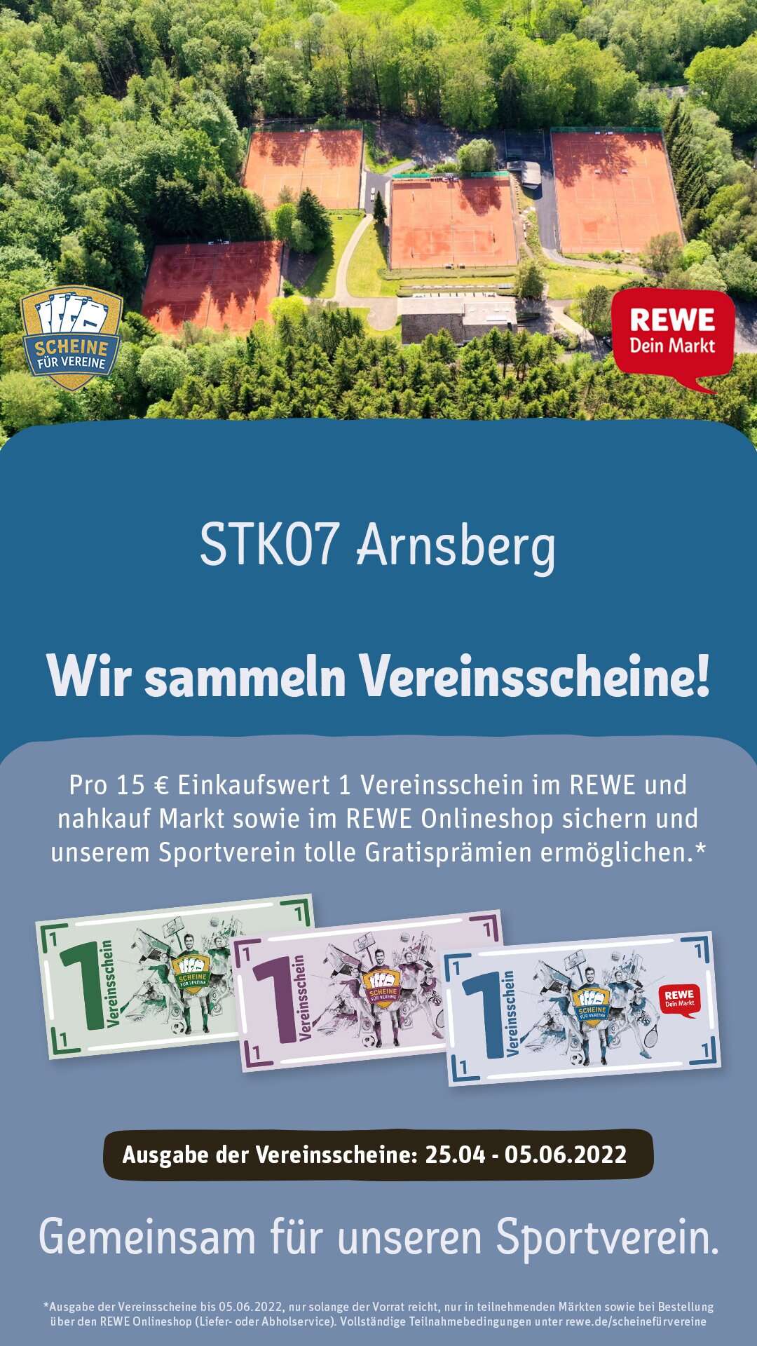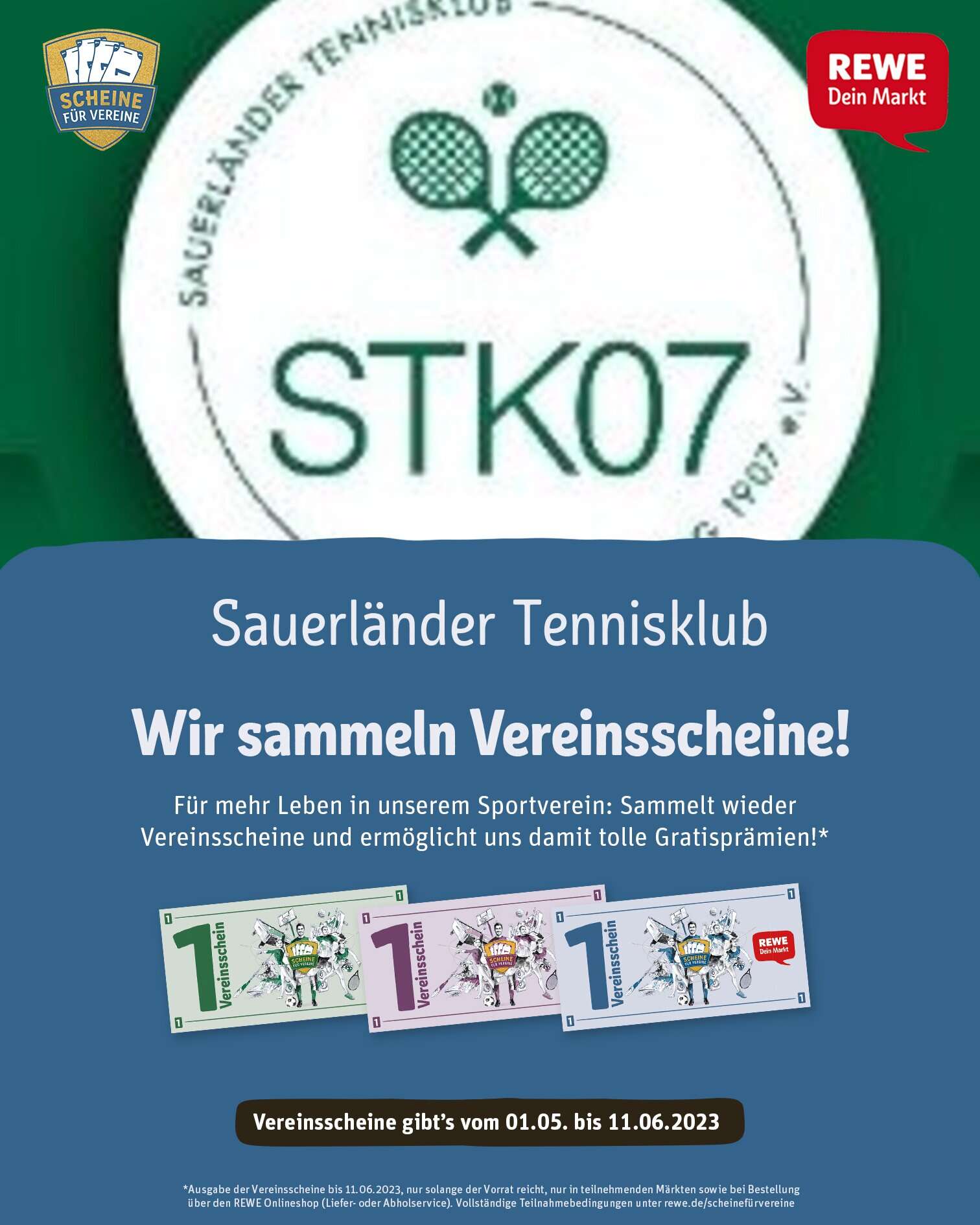 Liebe STK'LER, am 2.5.23 geht es bei REWE wieder um "Scheine für Vereine".