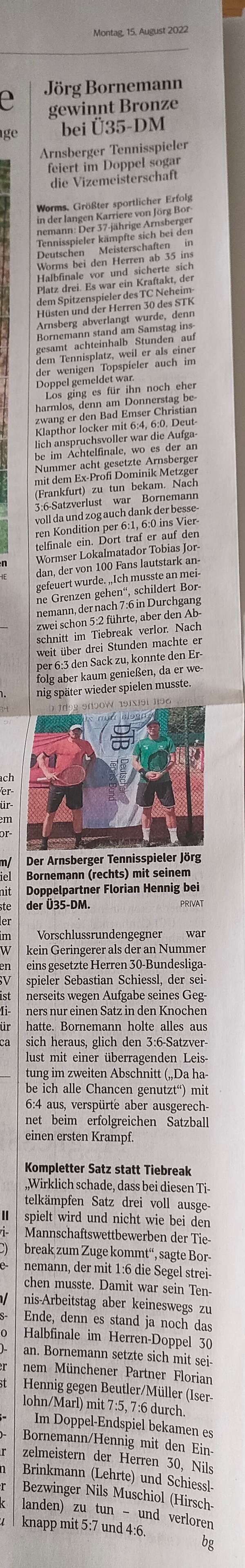 Bei den Herren gewann erwartungsgemäß Jörg Bornemann gegen Henri Schlinkert den Titel mit 6:3 und 6:2.