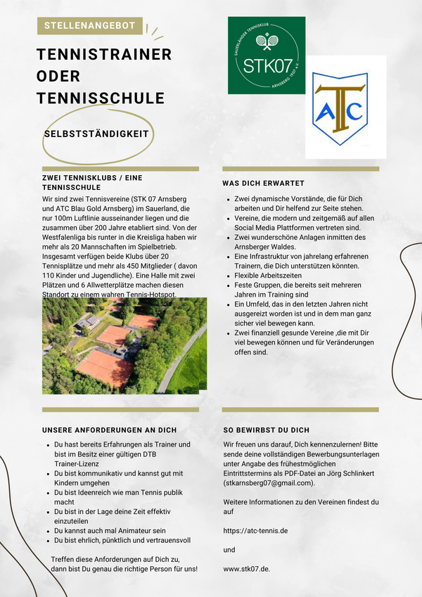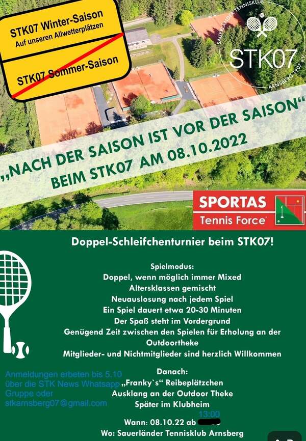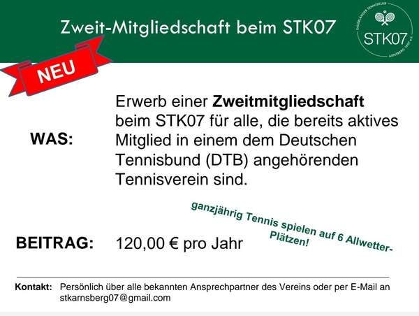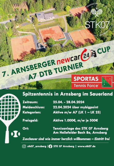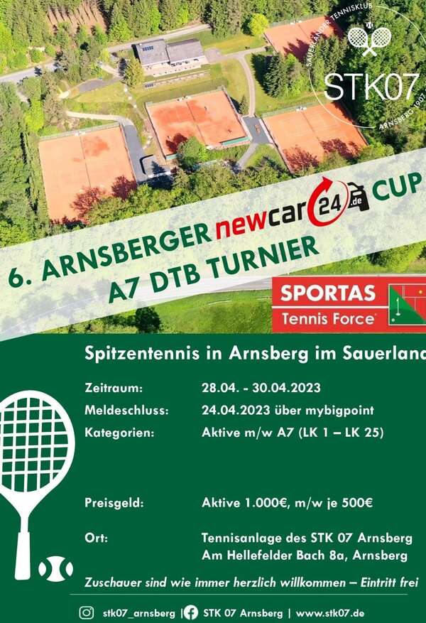 In diesem Zusammenhang wird auf den STKNEWCARCUP hingewiesen. Dieser findet vom 26.9-28.9 statt. Für gutes Tennisniveau ist somit gesorgt. Gäste sind herzlich willkommen. Der Eintritt ist frei und die bekannt gute STK Verpflegung ist sichergestellt.