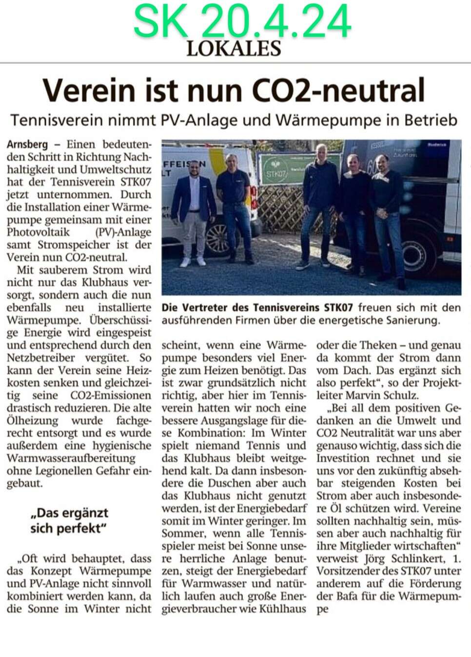 Der STK erhält über das Projekt "Zukunftsoffensive" der Volksbank- Sauerland eine Zuschuss zur Erweiterung der PV- Anlage mit einem zusätzlichen Batteriespeicher.