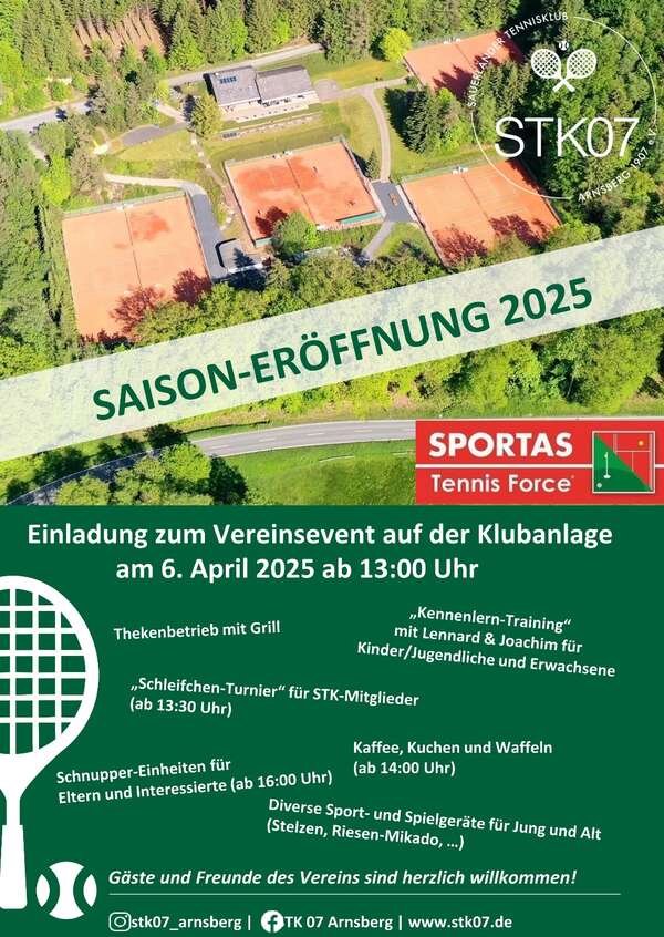 Anbei der Jahres- u. Eventplan des Sauerländer Tennisklub Arnsberg für 2025.