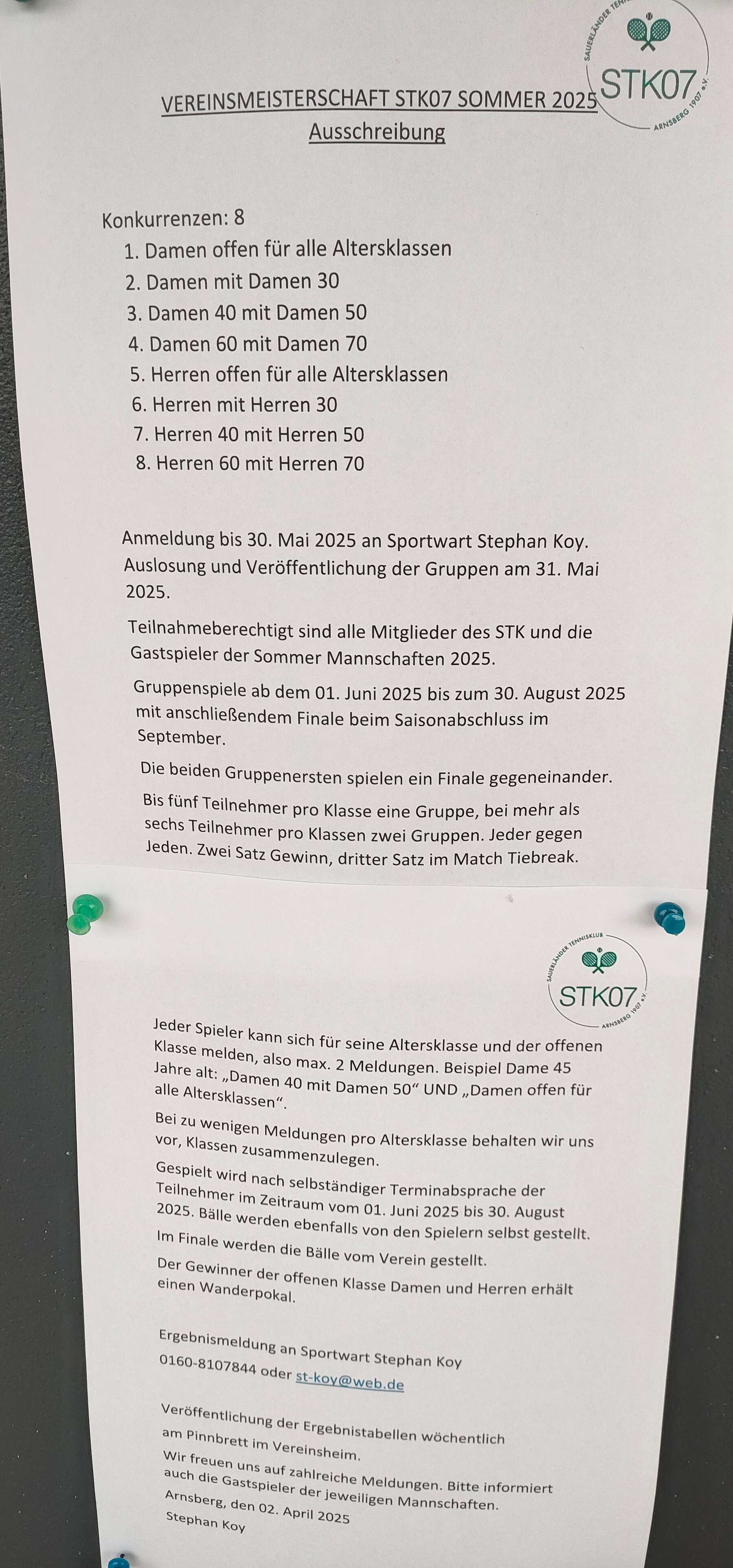 Bei Bedarf gerne unter stkarnsberg07@gmail.com oder der STK- WhatsApp Gruppe melden.