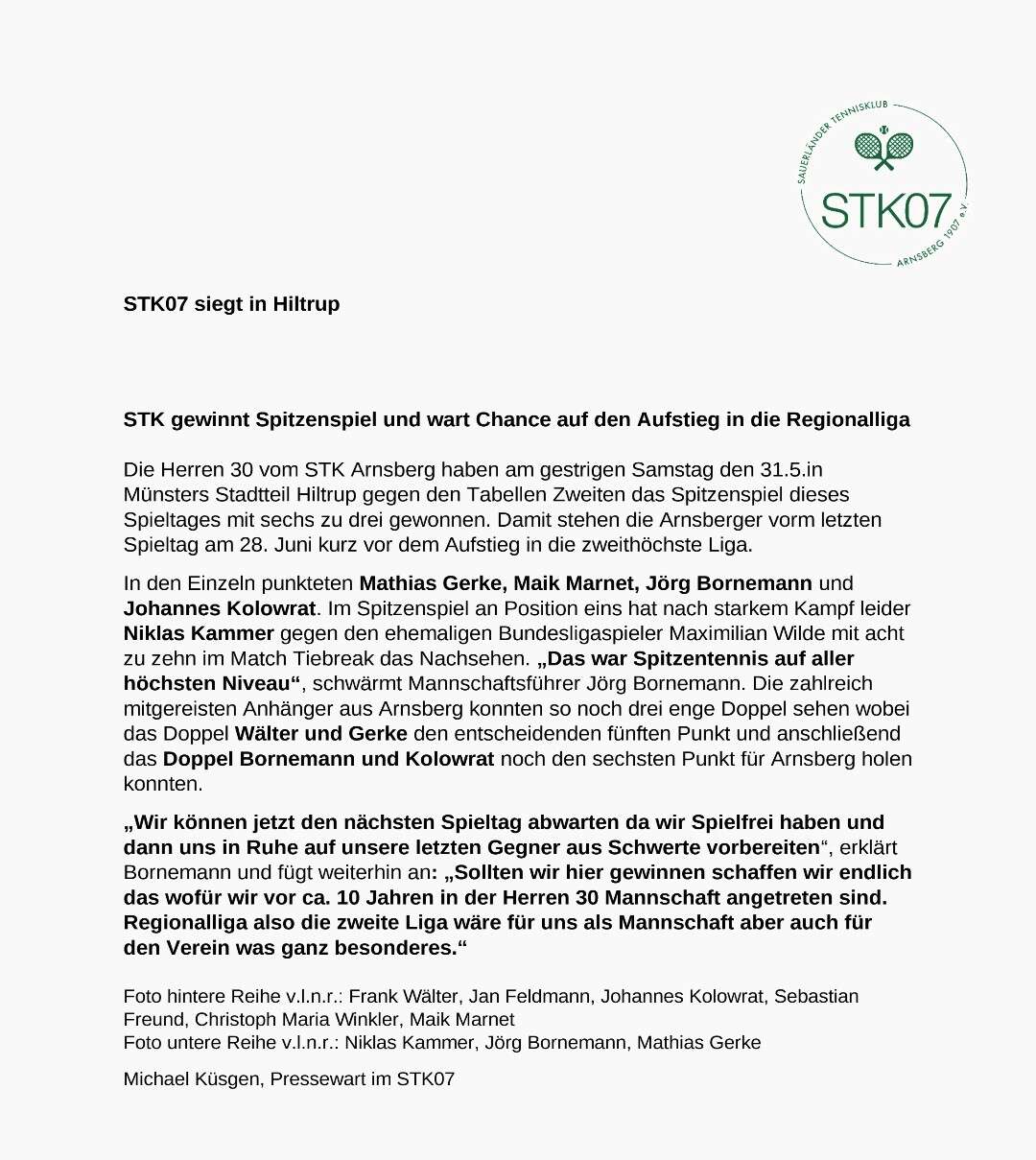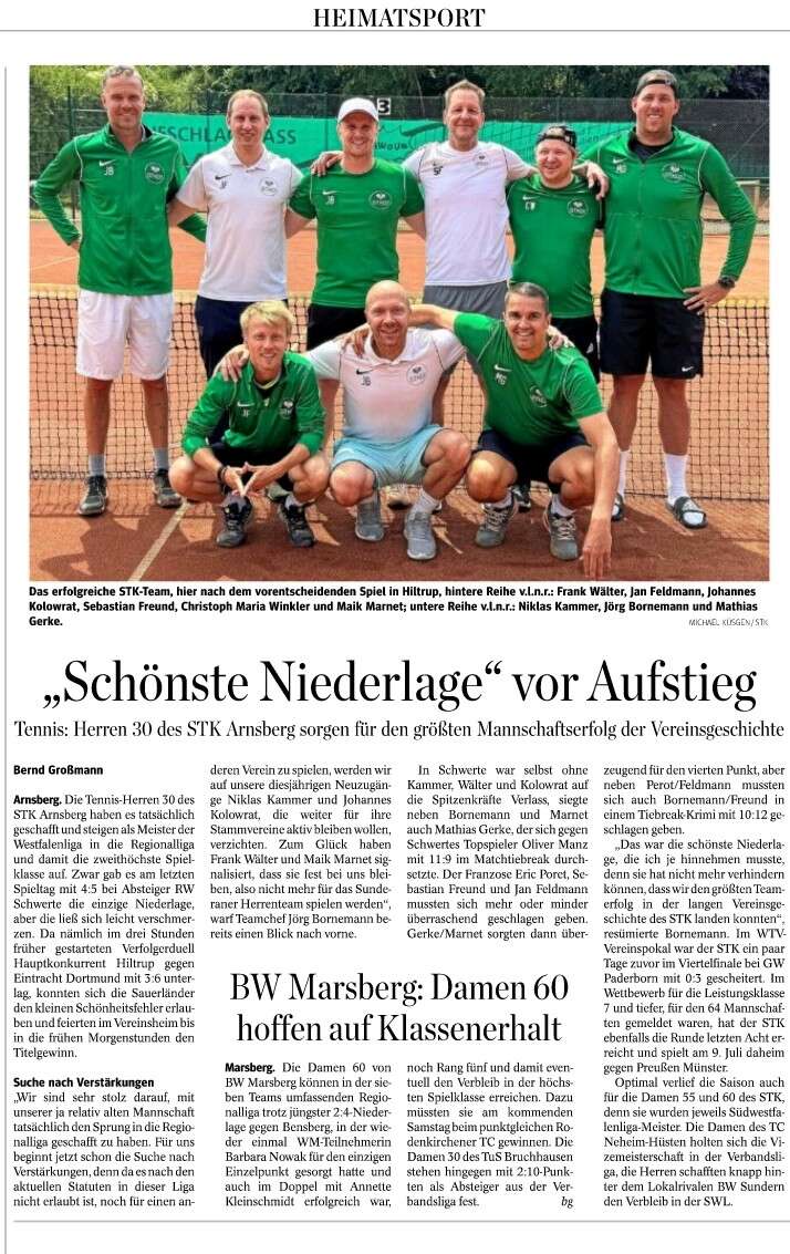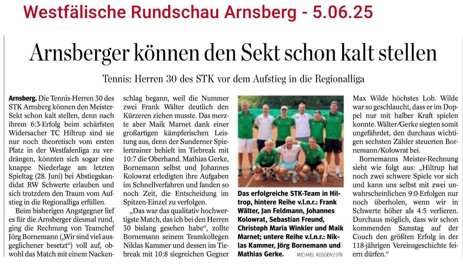 Die Herren 30 des STK haben den Aufstieg trotz Niederlage in Schwerte klar gemacht. Das bedeutet 2026 Regionalliga.