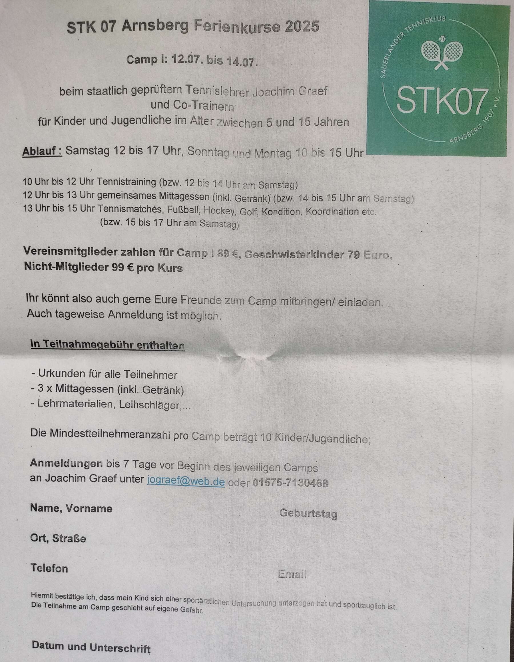 anbei ein paar Informationen zu den anstehenden Tennis- Ferienkamps:.