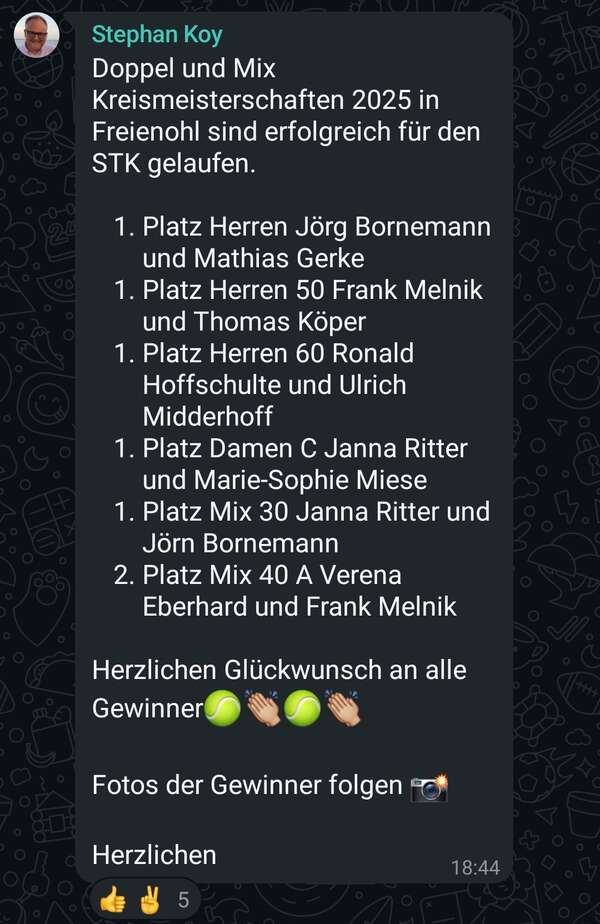 Genießt nun die anstehenden Feiertage und kommt gut ins neue und bestimmt wieder spannende Tennisjahr beim STK.