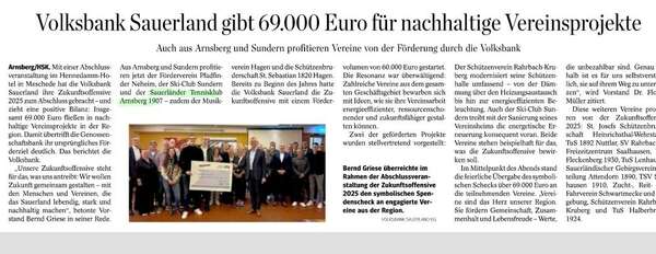 Wie wir finden eine tolle Sache und ein großer Dank geht an die Volksbank Sauerland für diese wunderbare Initiative.